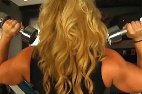 Sexy workout time with Muscle Pornstar Joanna Thomas. She starts with bicep curls and pumps up her huge strong muscles. Next she does some dumbbell rows and tricep extensions. Listen up boys and girls she is teaching you how to train properly to build big muscles like her. Joanna is starting to breathe heavy as she continues to pump up, but first she strips off her sexy workout clothes. She flexes the rest of her powerful body including her back, quads and ass. By the way you feet guys are going to love this video, no shoes allowed! Watch her masturbate and squirt gallons of pussy fluid! |
